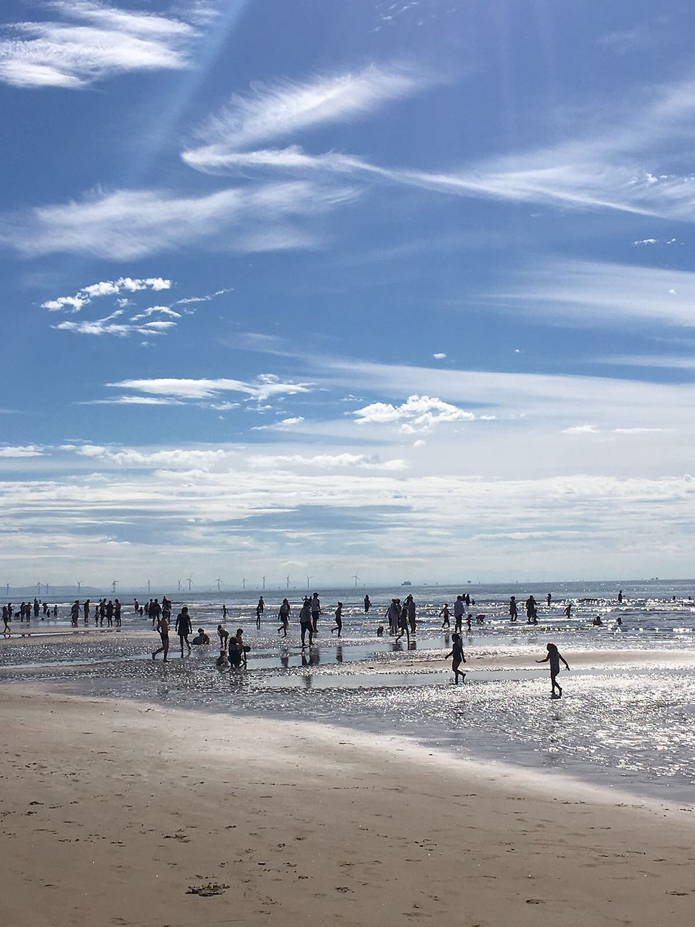 Blundellsands Beach in the north of Crosby, known for it's life-size iron sculptures of men. You have to go to Forby beach which is ideal for families, with a large car park, picnic areas and waymarked paths to the beach, dunes and woods.